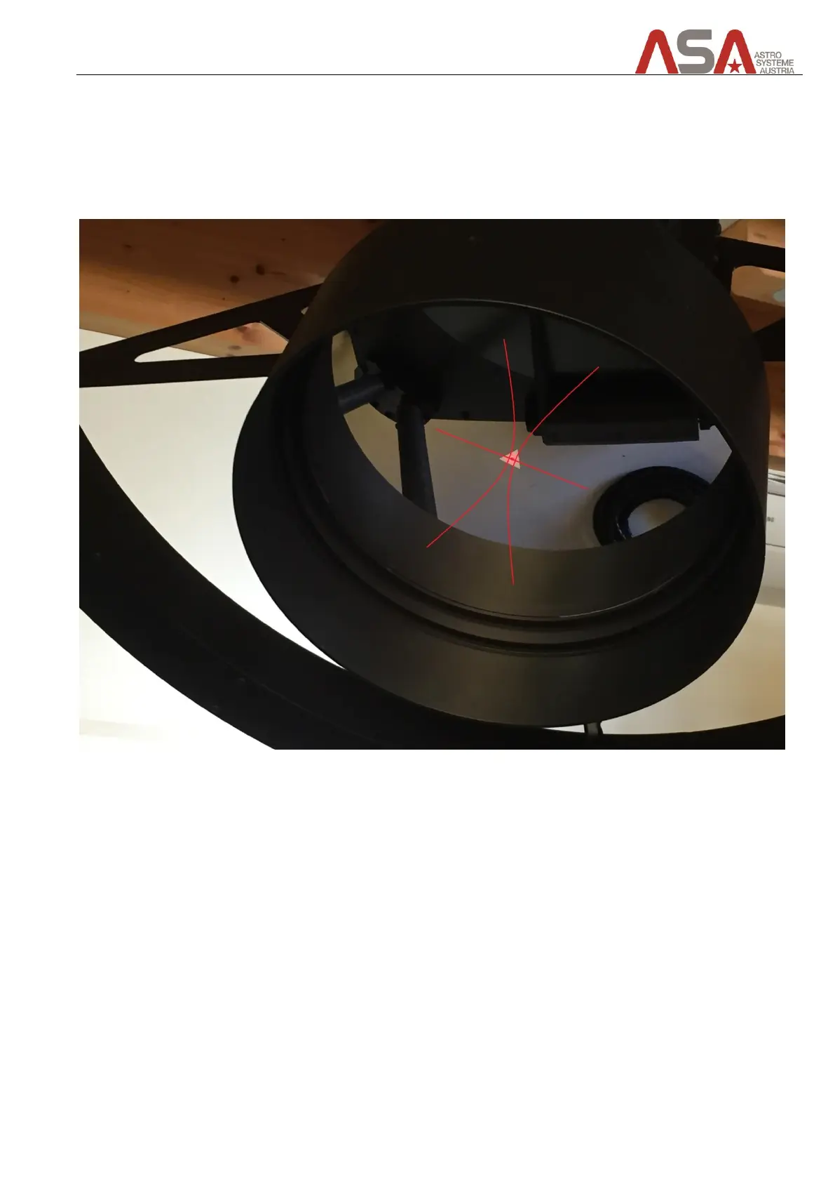 The straight line illustrates what happens with the laser point when the tertiary mirror is tilted.