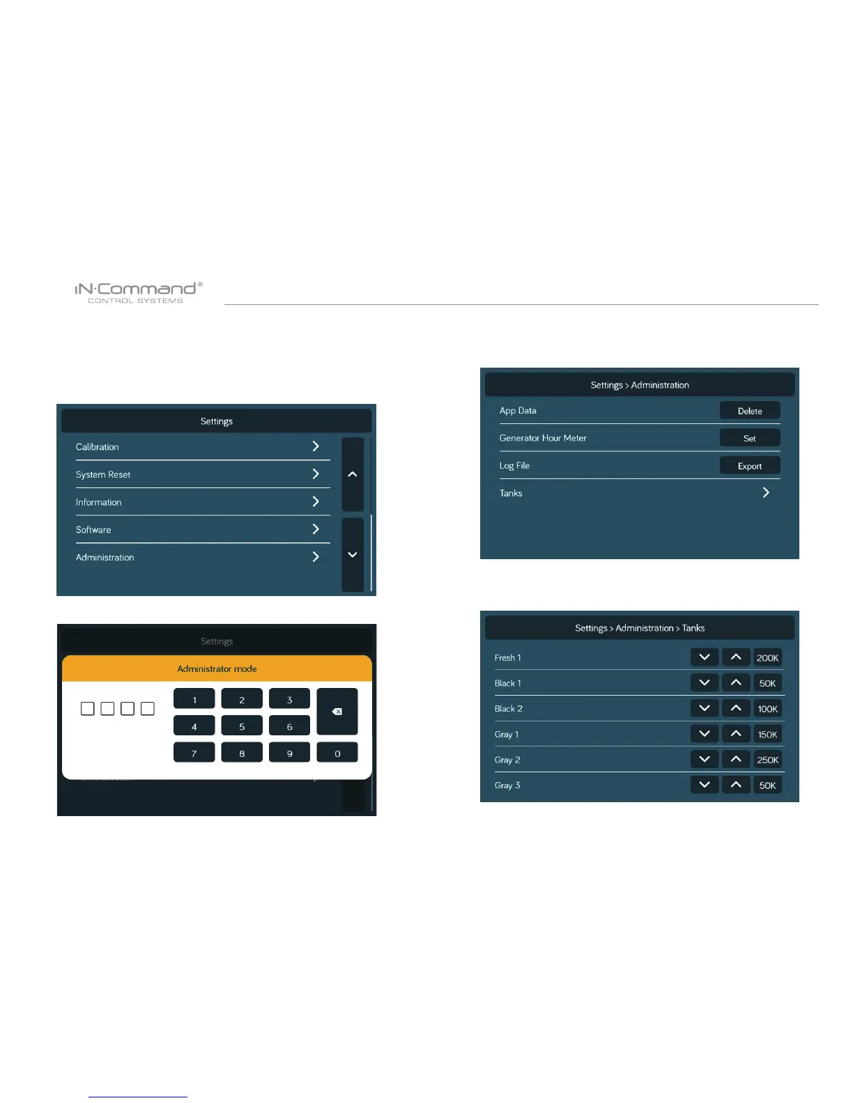 Hour Meter can be set, and the Water Tanks can be calibrated.