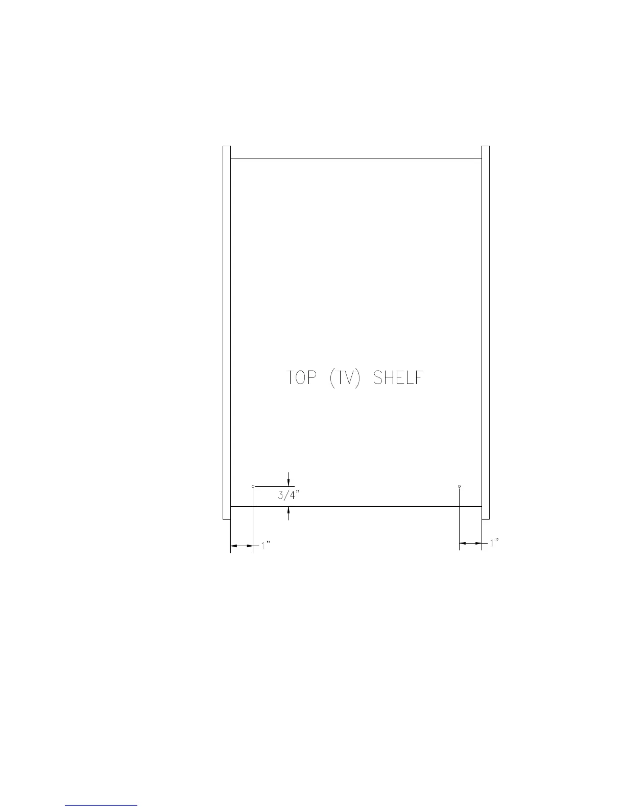 3) Pre-drill 1/8” pilot holes on bottom TV shelf for strap.