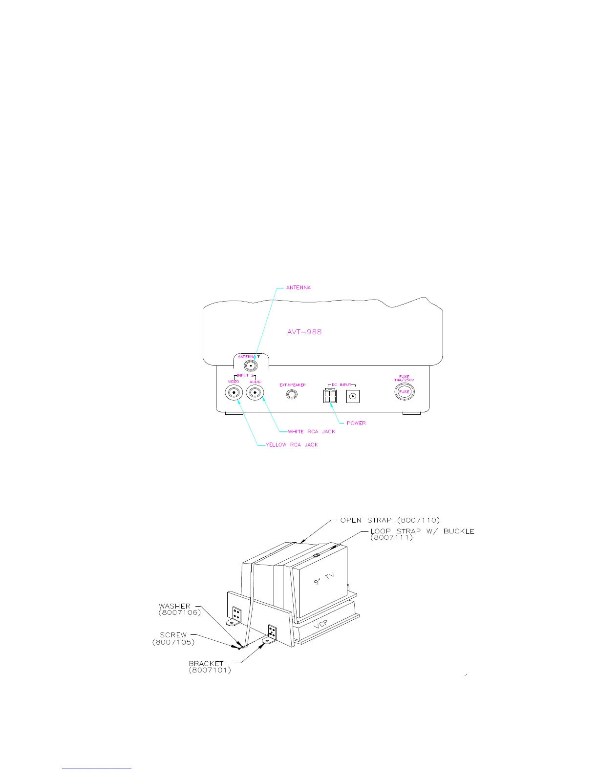 ⇒ Secure television down with two straps. Make absolutely certain that straps are