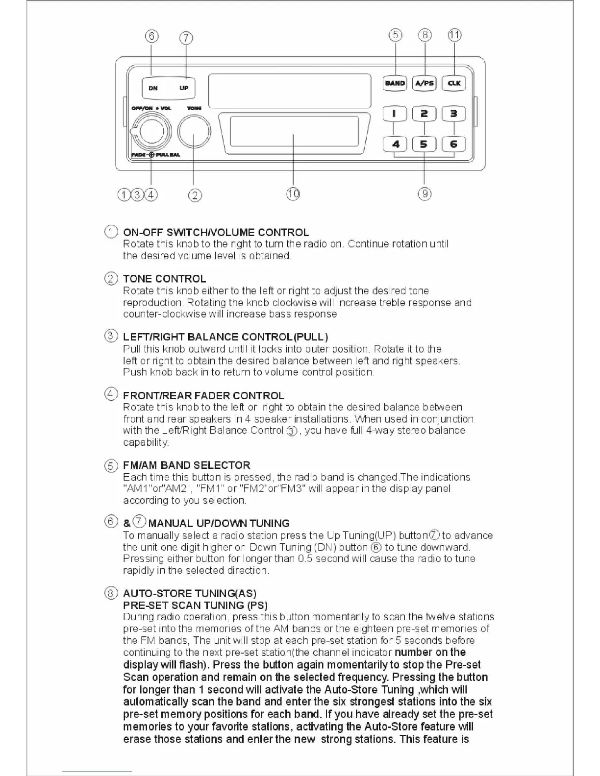 ASA Electronics VR50 - Operating Controls; On-Off Switch and Volume Control; Tone Control; Left;Right Balance Control