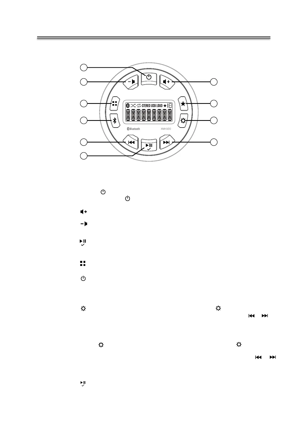 Appuyez sur le bouton (10) pour augmenter le volume.