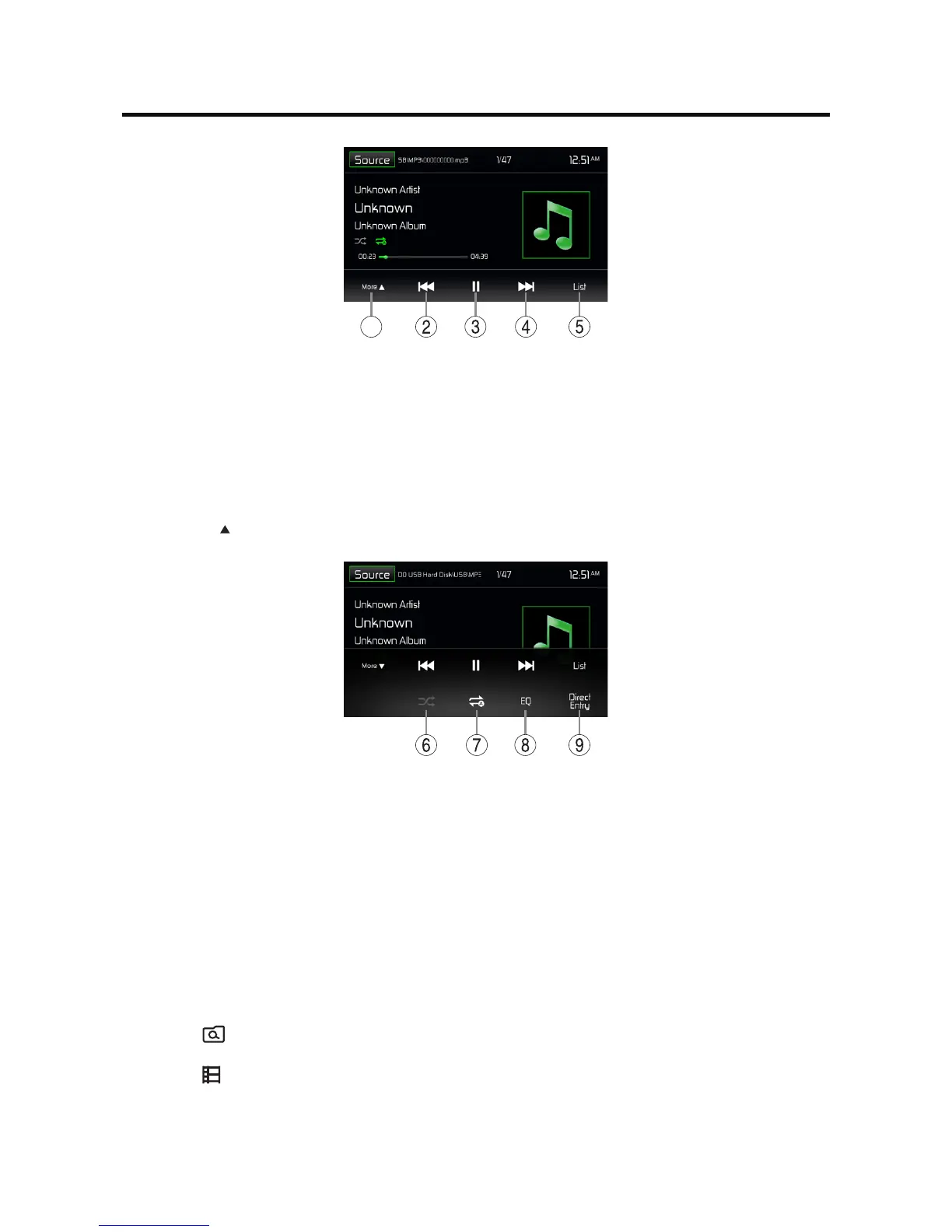 ] icon to display all the audio les of the data carrier.