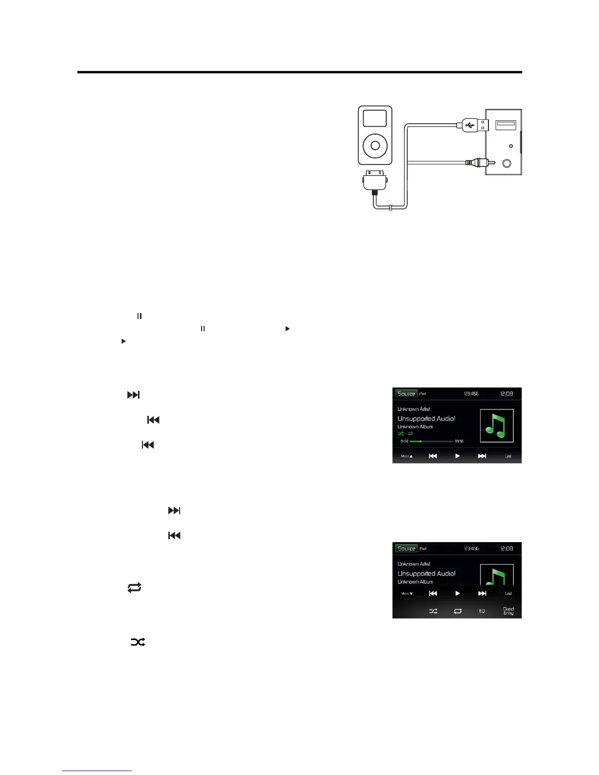 Connect an iPod or iPhone to the unit via an iPod cable.