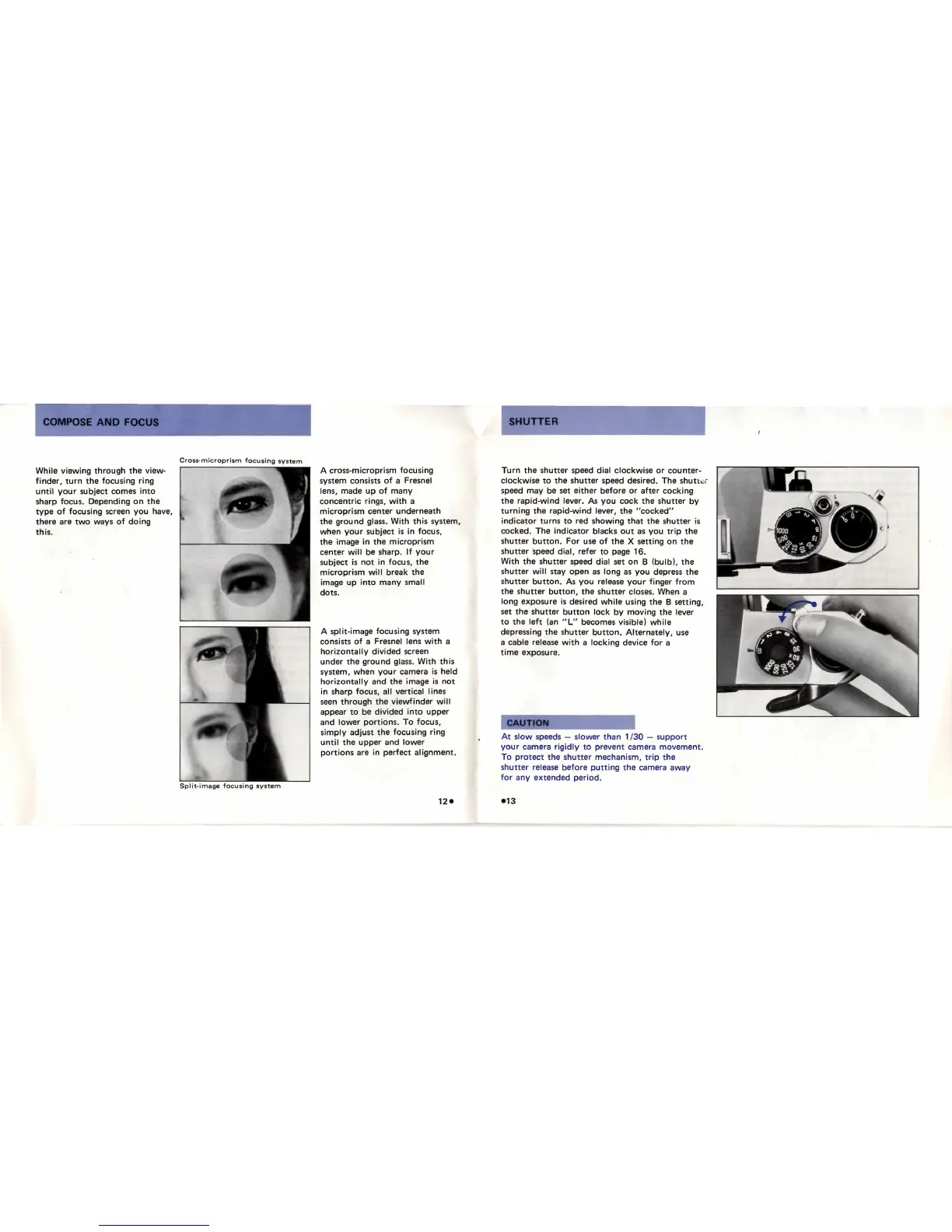 ASAHI Pentax KX - Compose and Focus; Cross-microprism System; Split-image System; Shutter Operation