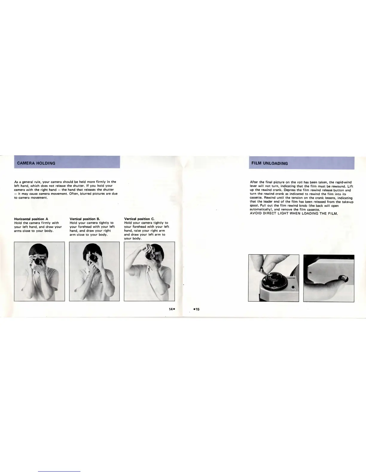 ASAHI Pentax KX - Camera Holding Techniques; Horizontal Position; Vertical Positions; Film Unloading