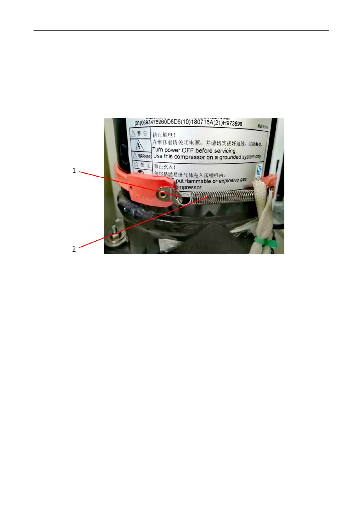 (1) Install the electric heating belt at the shaft of the compressor, as shown in the figure.