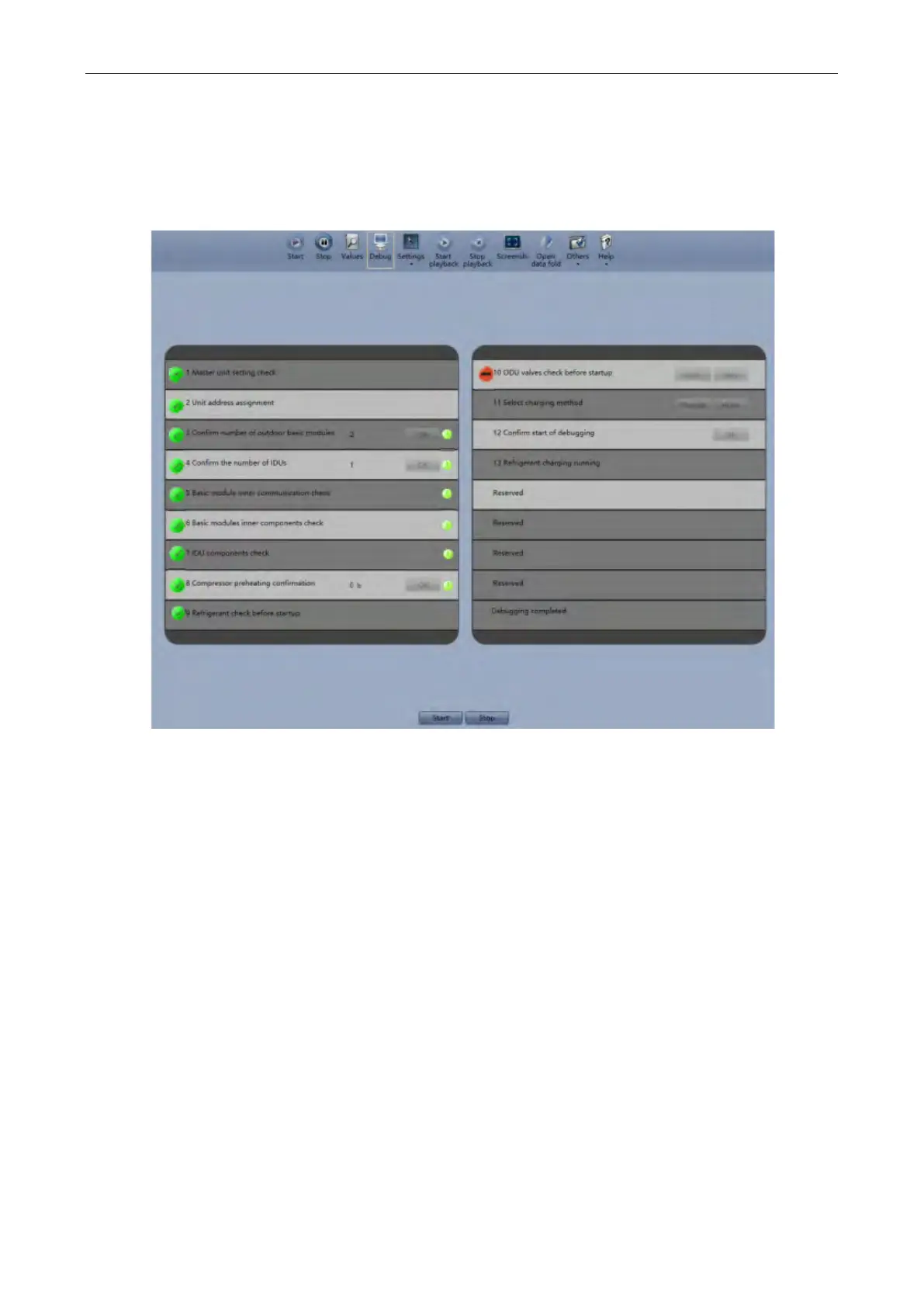 During commissioning, click "Stop" to stop commissioning and then click "Start" to continue