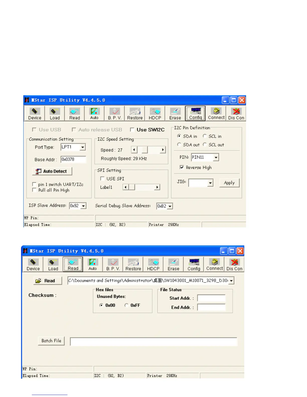 1) Execute ISP program “ Mstar ISP Utility ” and then click “ Config ” tab.
