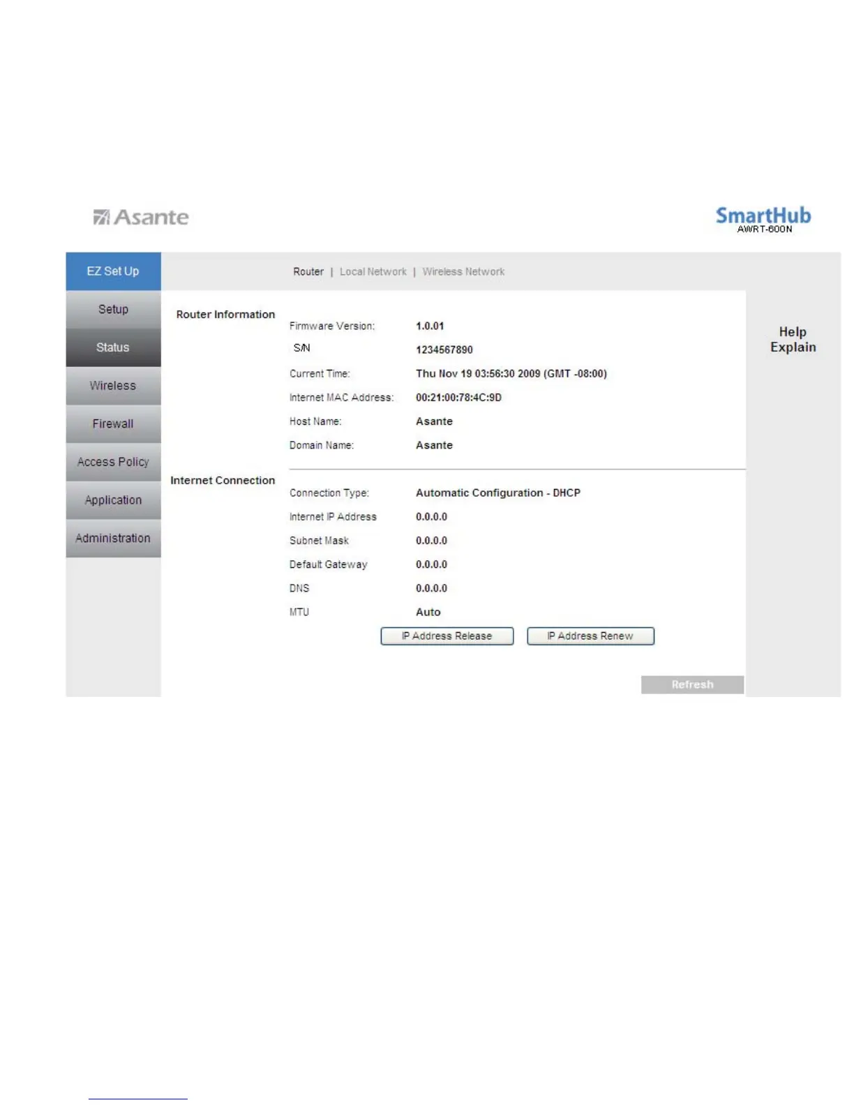 If each field has a valid numbers(not all 0’s) assigned, the router is connected to the Internet.