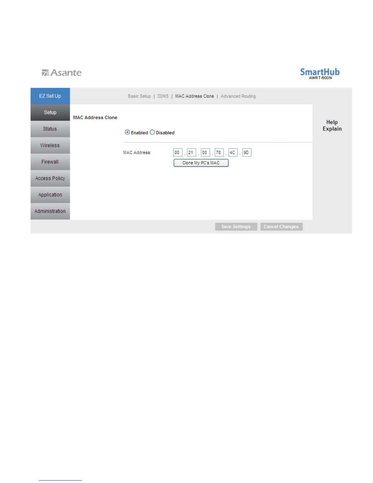 6.1.3 Setup > MAC Address Clone