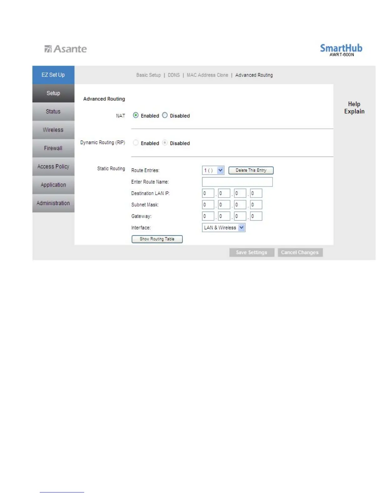 Asante AWRT-600N - Setup > Advanced Routing