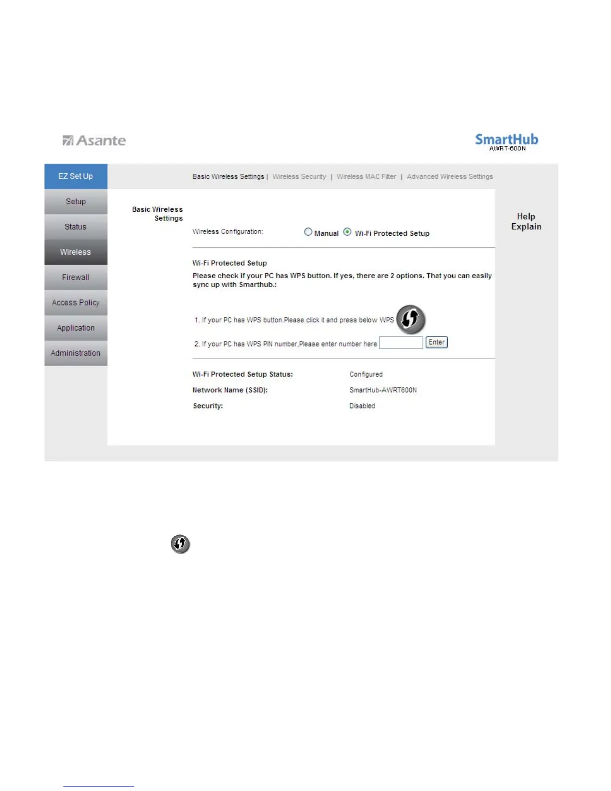 WiFi Protected Setup supports two types of connection: Push Button Configuration