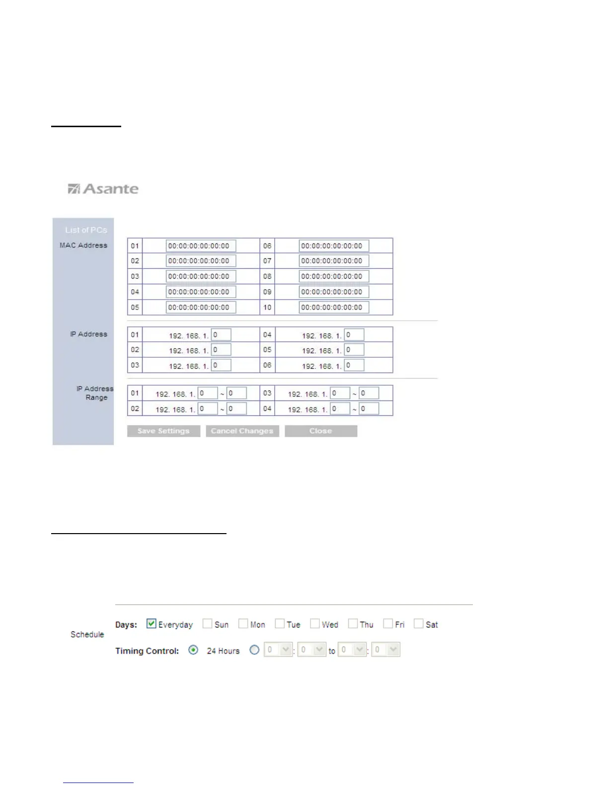 Select to Deny or Allow the specified clients to access the Internet by Day and Time.