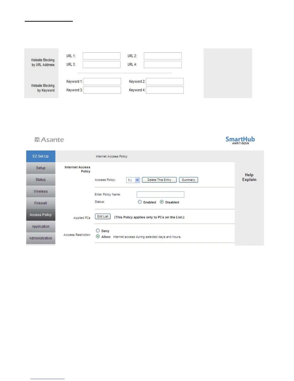 After you selected Allow Internet accessing for Access Restriction, you can configure the Internet