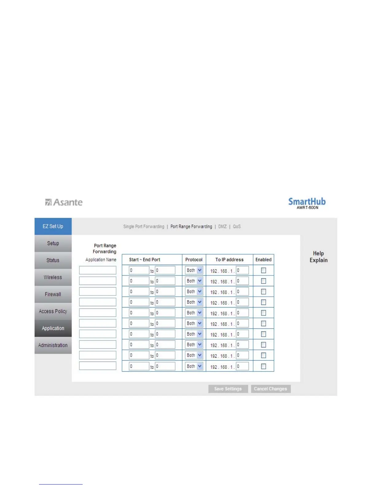 This page allows you to setup port range forwarding for the specified applications.
