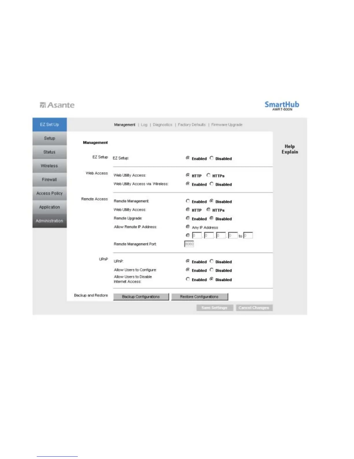 EZ Setup: Select to enable or disable EZ Setup. If EZ Setup is disabled, the user is allowed to