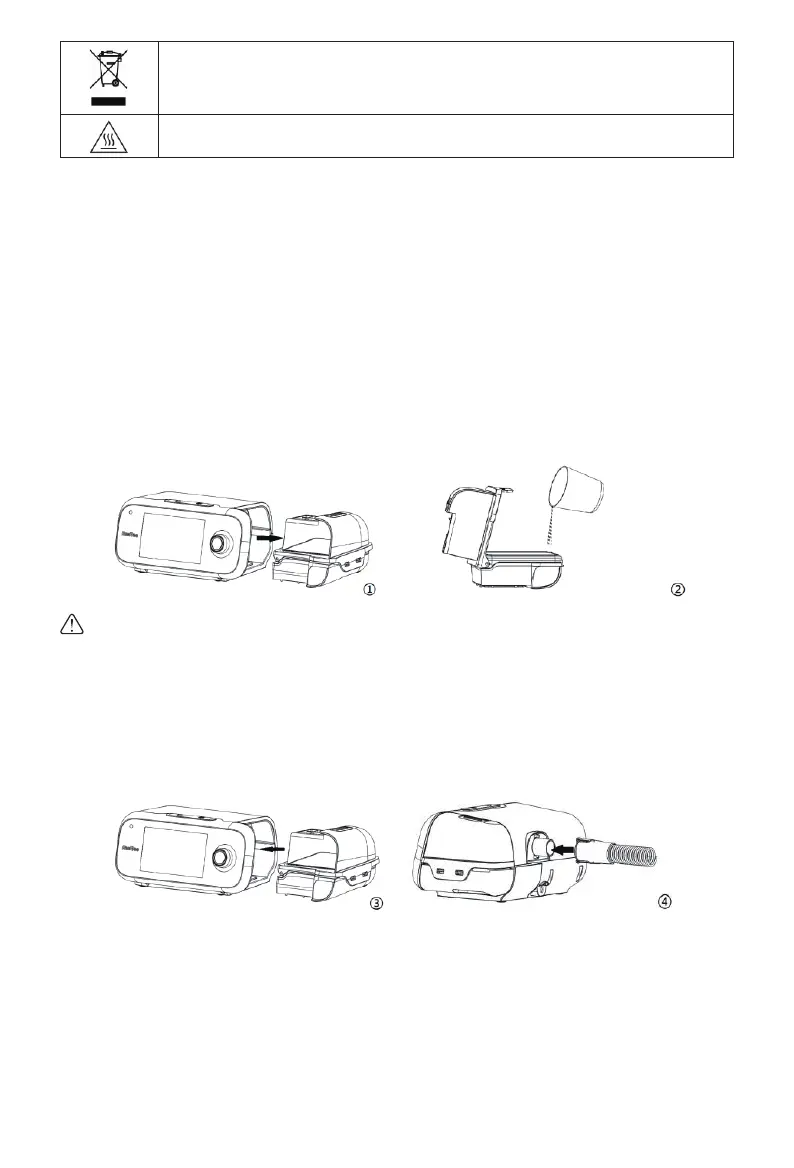 往水箱加水時,請勿超過最高水位線,否則會增加呼吸管和主機進水的風險。