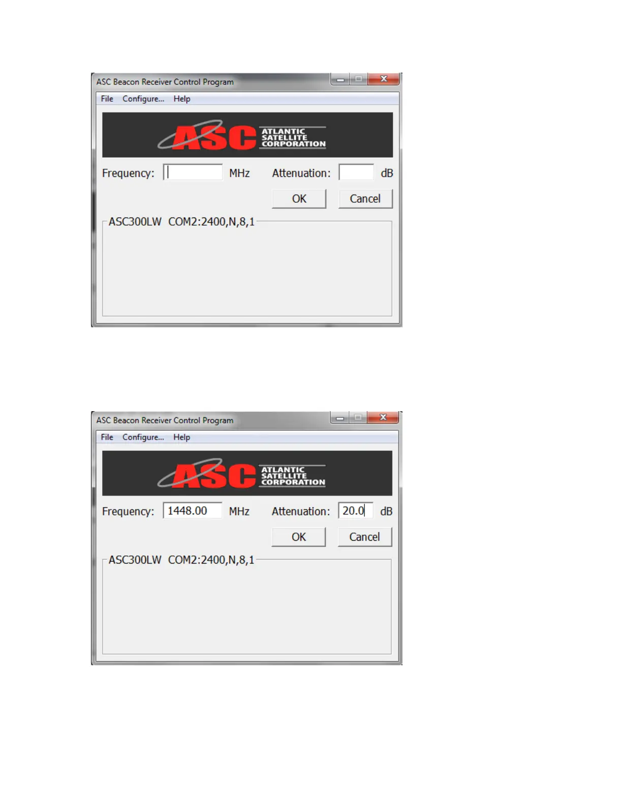 Enter the desired beacon frequency and attenuation for the unit in the appropriate boxes.