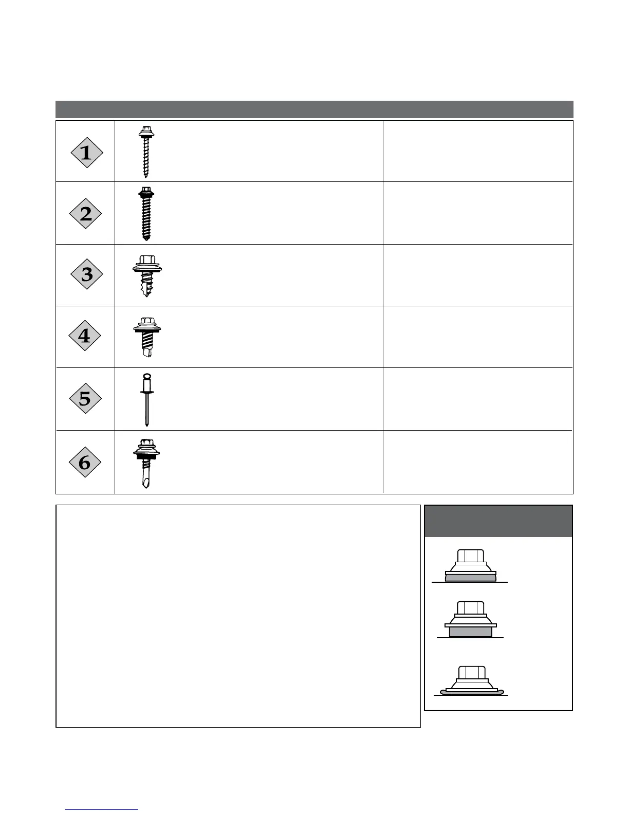 pages of this manual for specific fastener usage. See page 6 for fastener spacing.