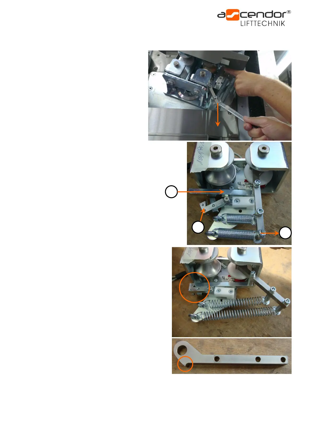 After resetting the safety catcher check the upper handrail for scratches and notches.