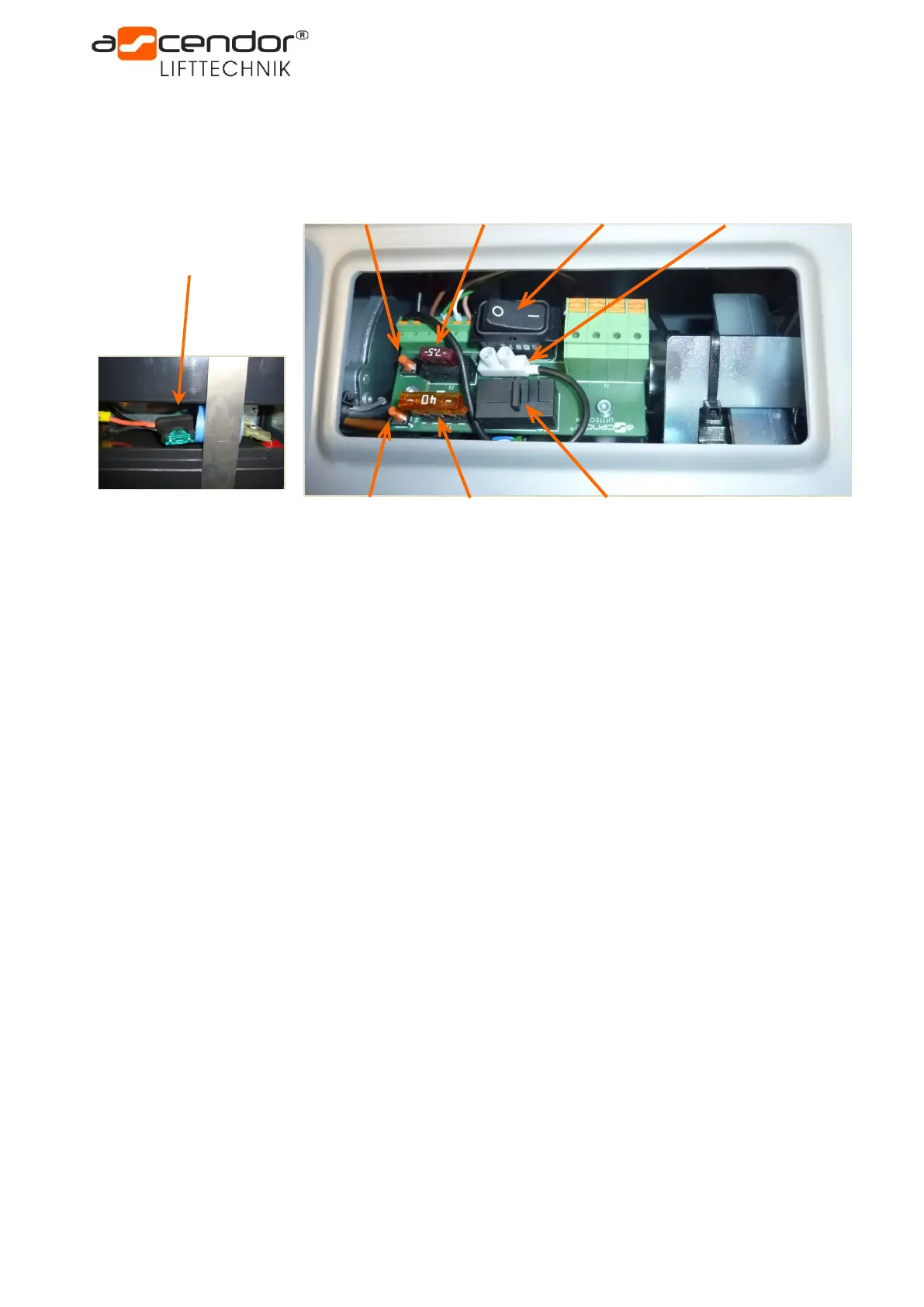Fuse. If the batteries are completely discharged, the emergency power supply cable must be connected to the