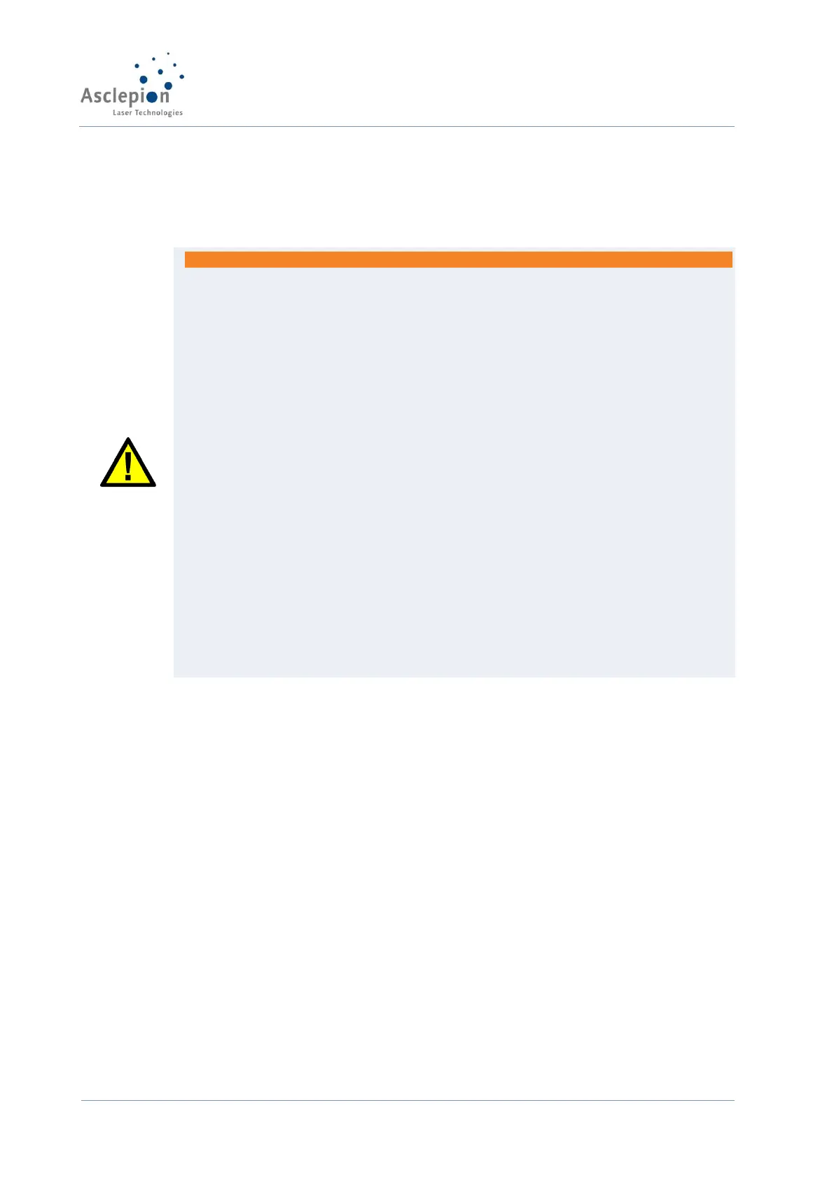 • Keep a minimum of flammable materials in the treatment room. If the treatment