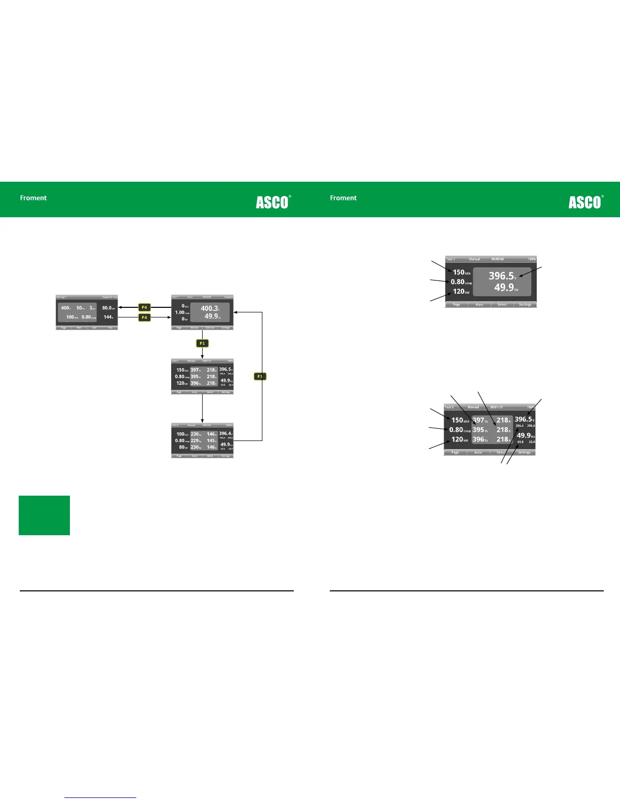 This first Test page shows the real-time Voltage and Frequency of the supply as it is tested,