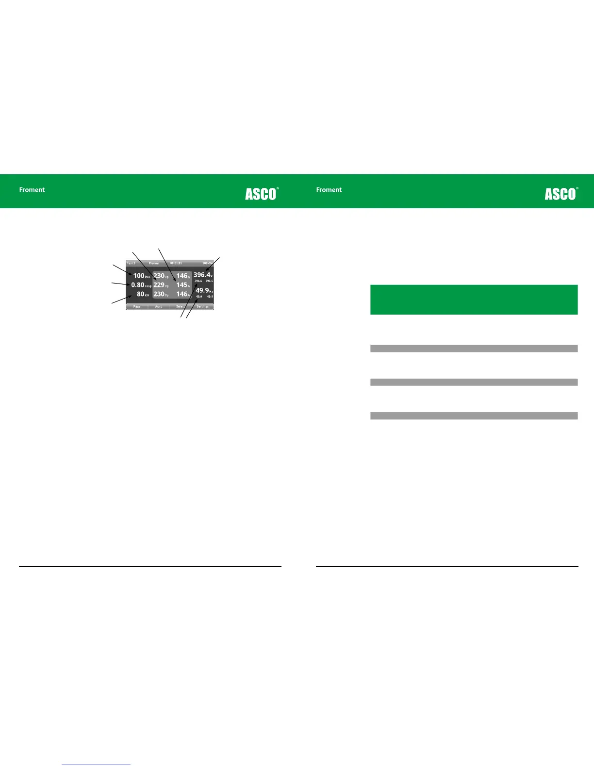 Test 3 displays true rms three-phase measurements of the phase to neutral voltage (VP),
