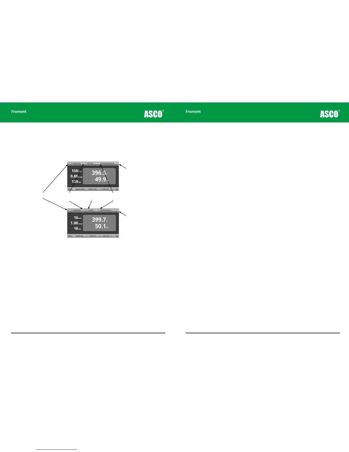 Figure 4-18 The Test screen status bar - showing the dierences between automatic