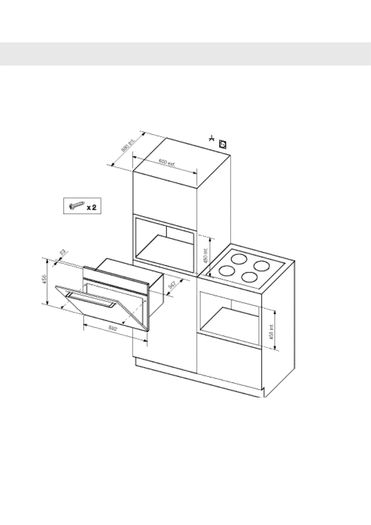 The oven may be installed either under a worktop