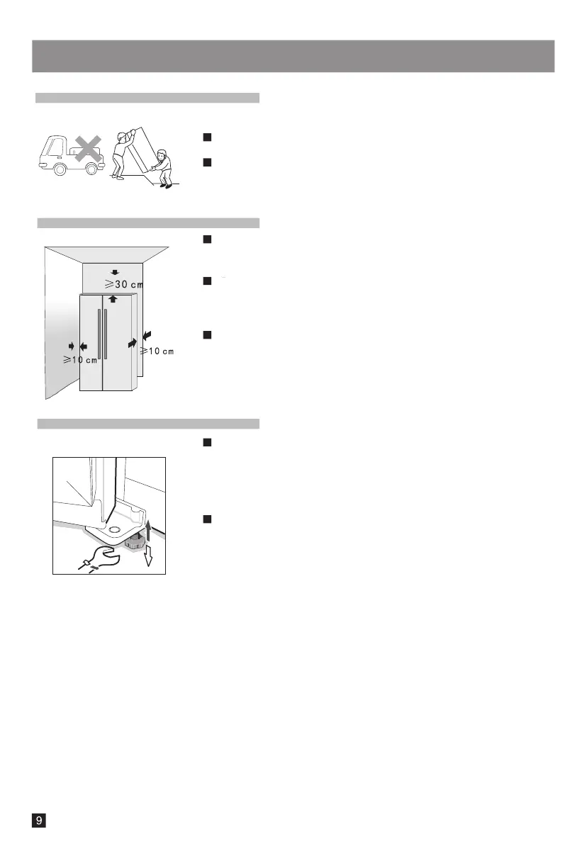Do not carry the refrigerator horizontally or reversely.