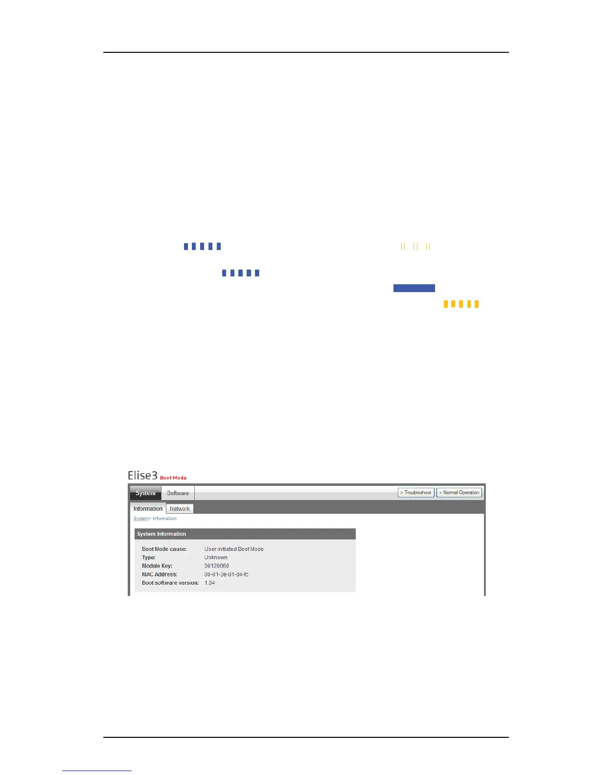 Under System > Information the reason for why the Elise3 is in Boot Mode, the module key