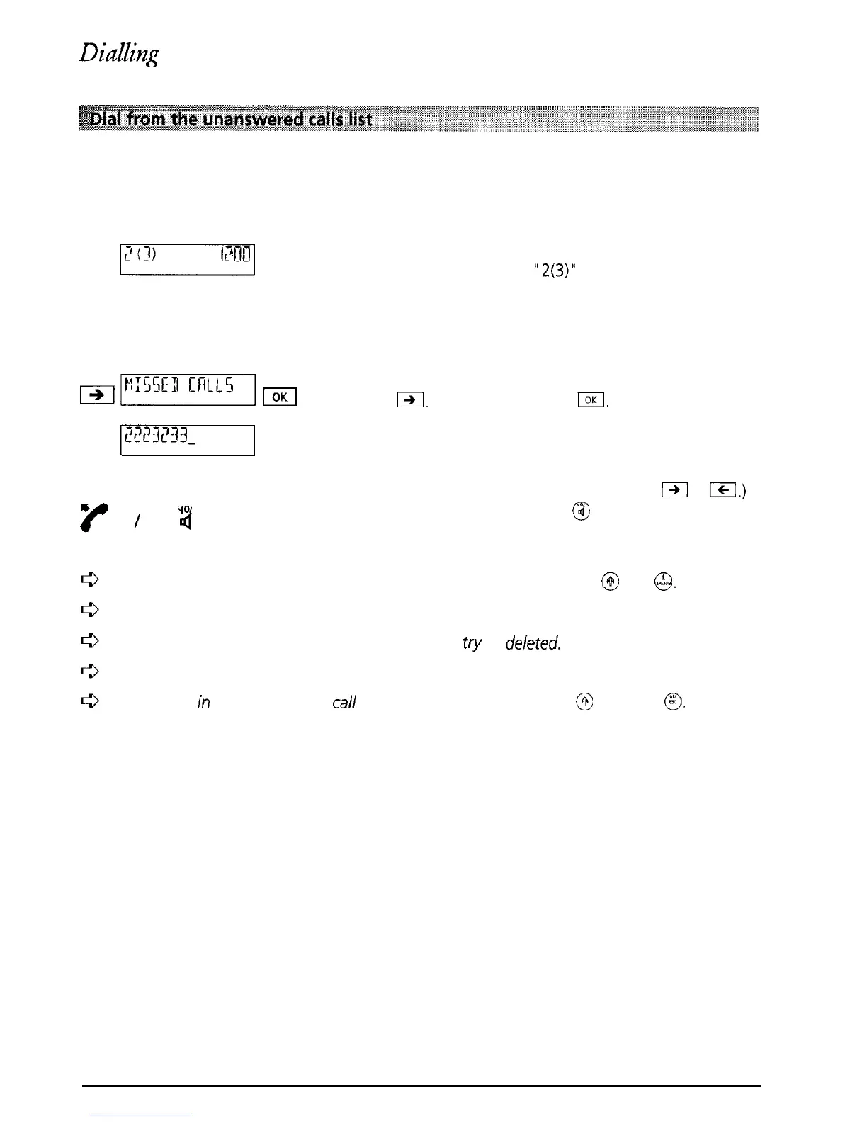 (for all users) can be stored in the unanswered calls list. These “missed calls” can be dialled from