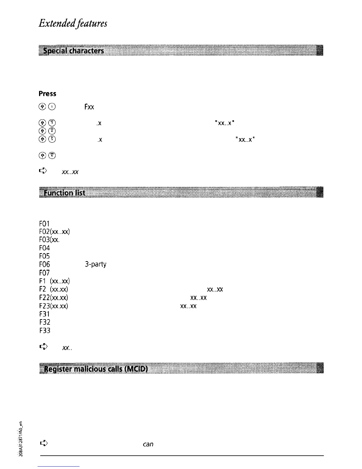 “xx” is initiated (see “Function list)