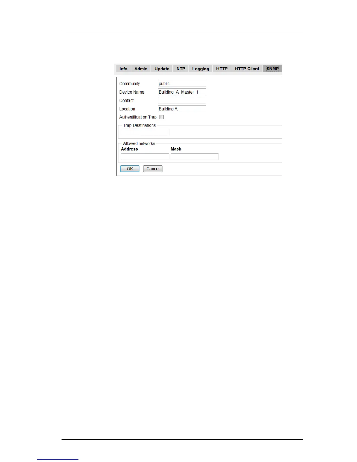 traps. Access via SNMP is only possible if the correct Community Name is entered. If