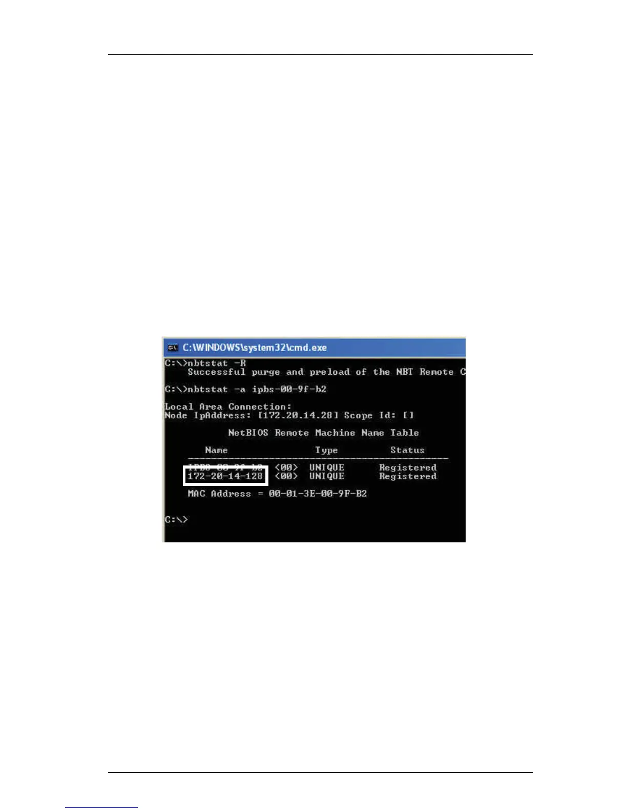 C:\ nbtstat -a ipbs-xx-xx-xx (in case of IPBL, enter "ipbl-xx-xx-xx")