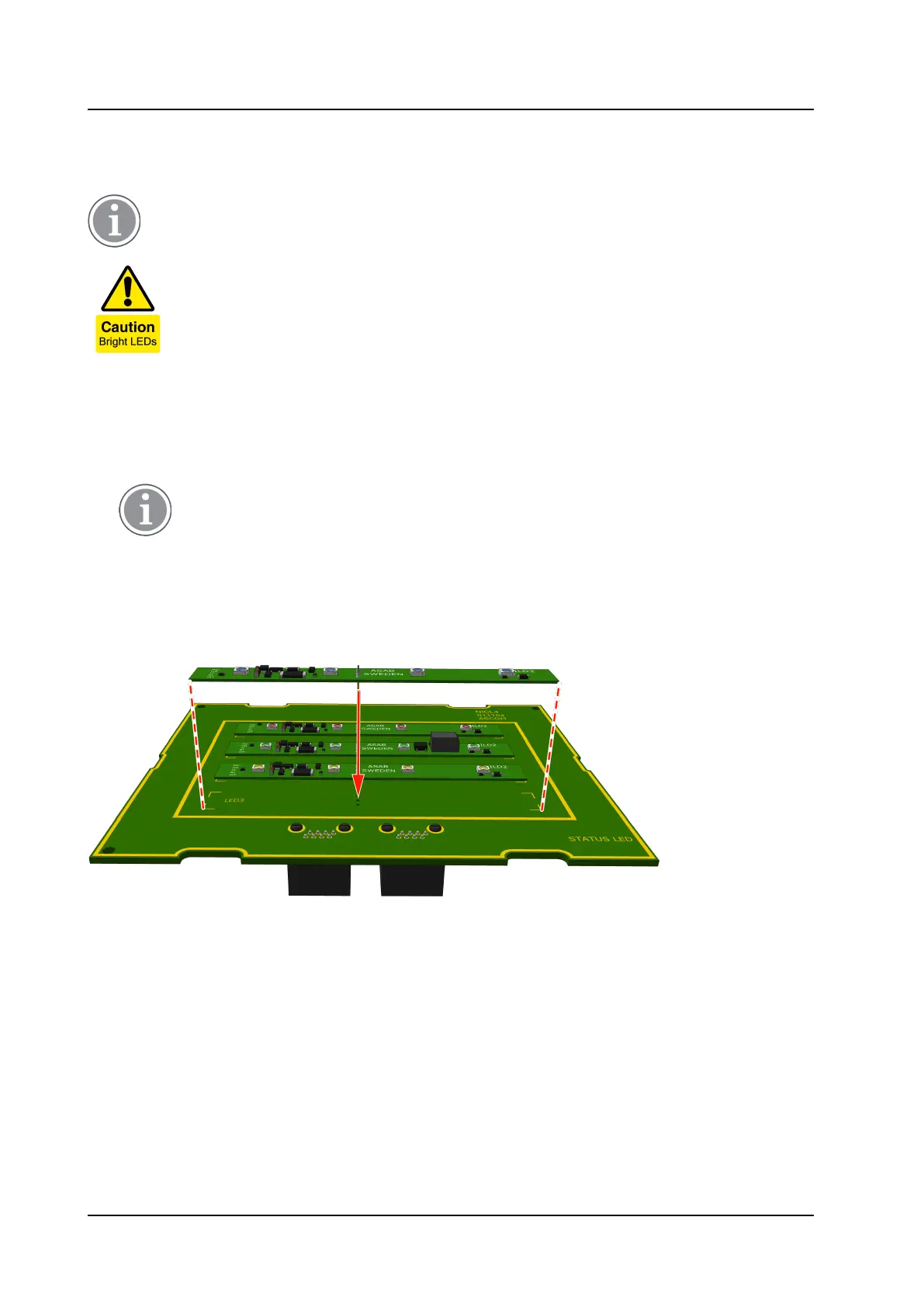 the LED boards that are placed onto the NICL4 circuit board. Do not stare into the light when