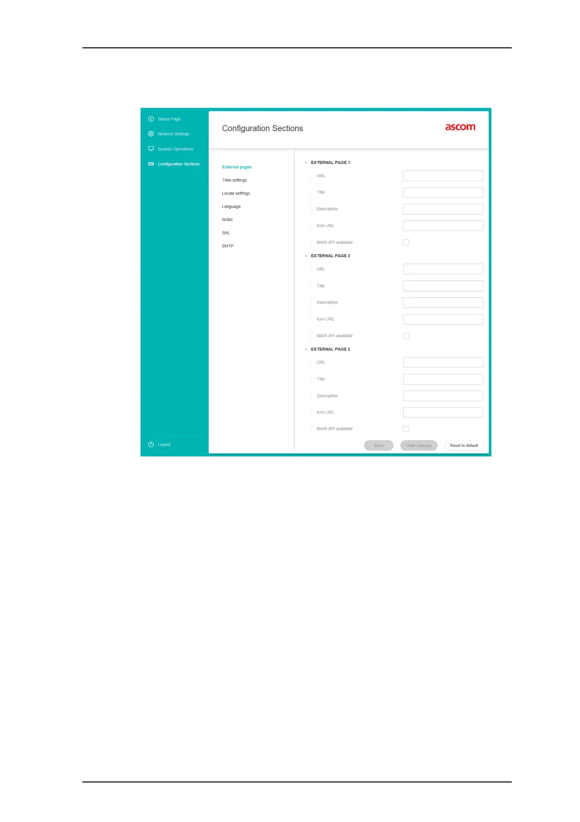 above, the Ascom logo shows as a link in the side bar and the webpage in the main