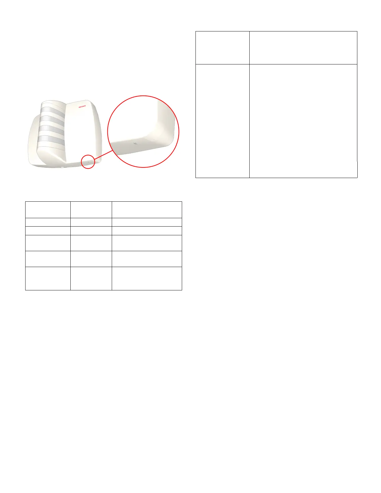 Table 2: LED colors and blinking rate