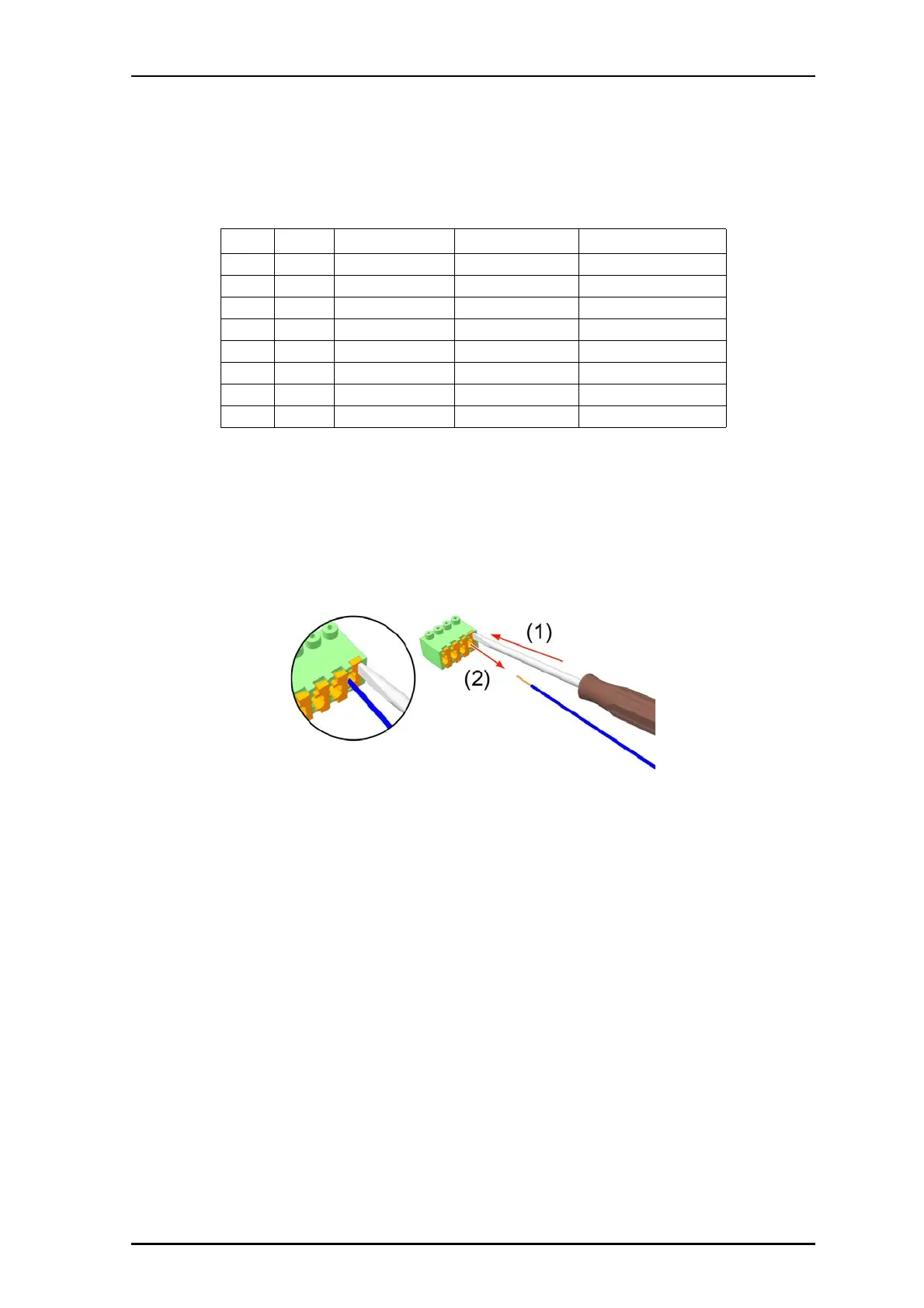 2. Firmly push in the key to open the spring-cage connector. See item 1 below.