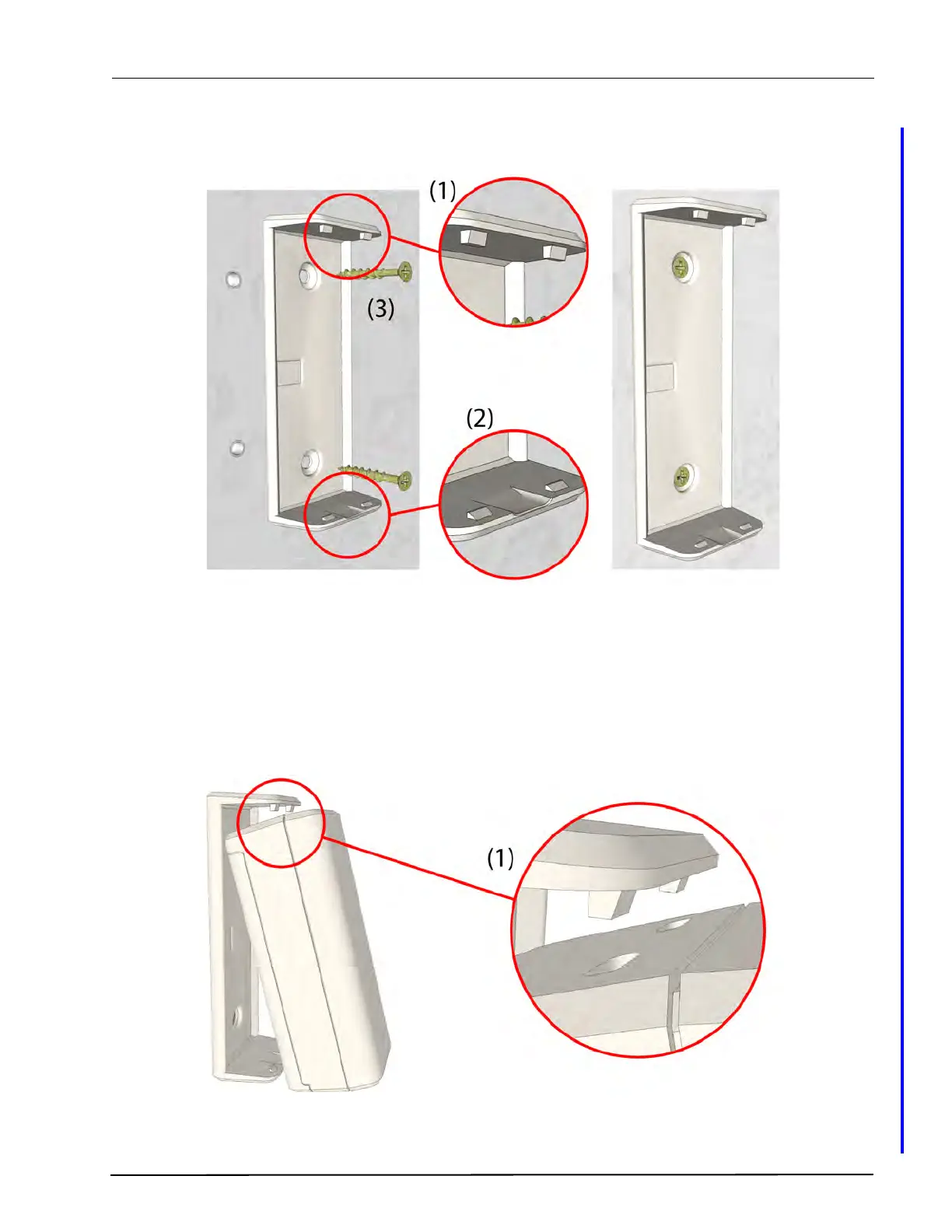 Mount the bracket on the wall with the two larger sized snap fittings at the top.