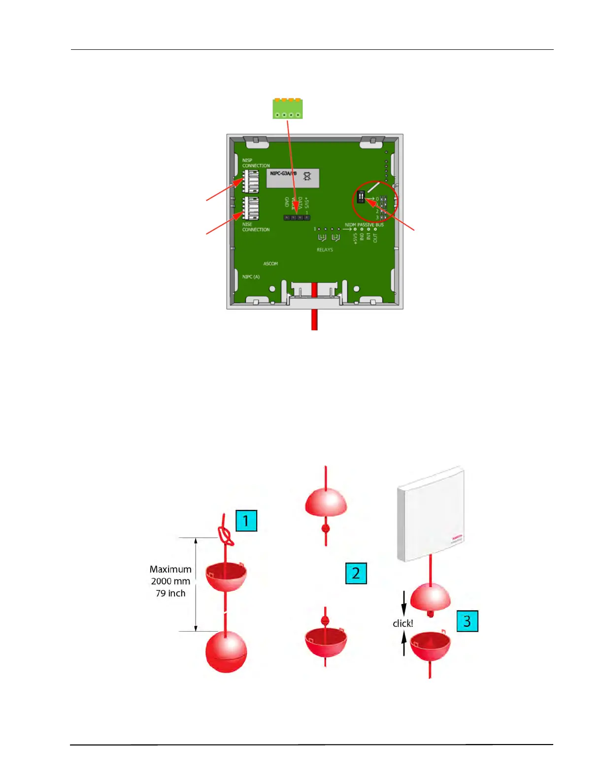 Figure 103. Pull cord module electrical connections and address setting