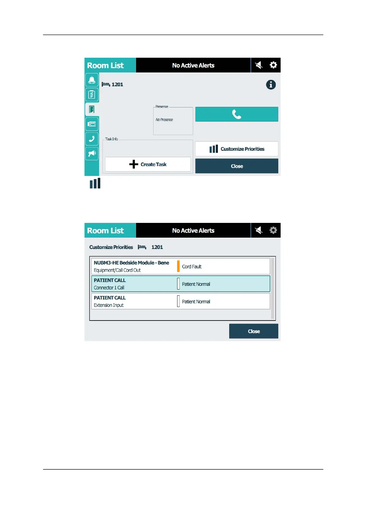 Note: It is possible that a room or bed has no prioritized devices. In this case, the Customize