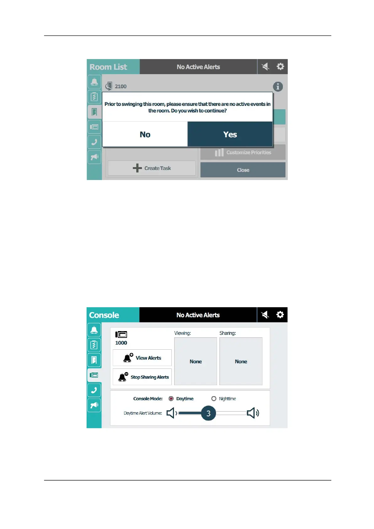 screen, you can view and share alerts with other staff consoles and annunciators, and set the