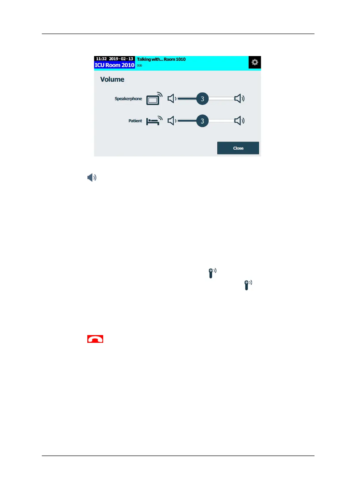 • Touch and drag the Patient slider to adjust the of the patient’s speakerphone.