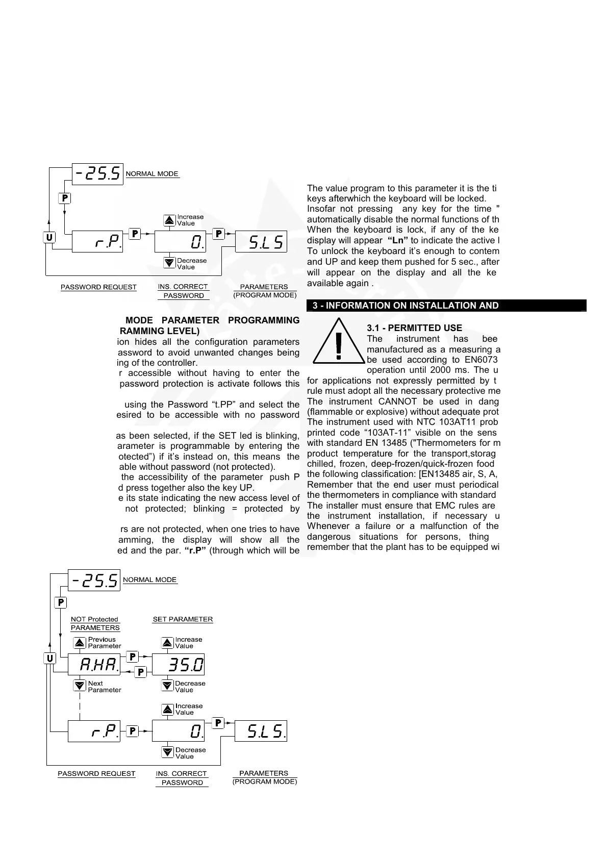 To activate the keyboard lock it’s enough program the par. “t.Lo”