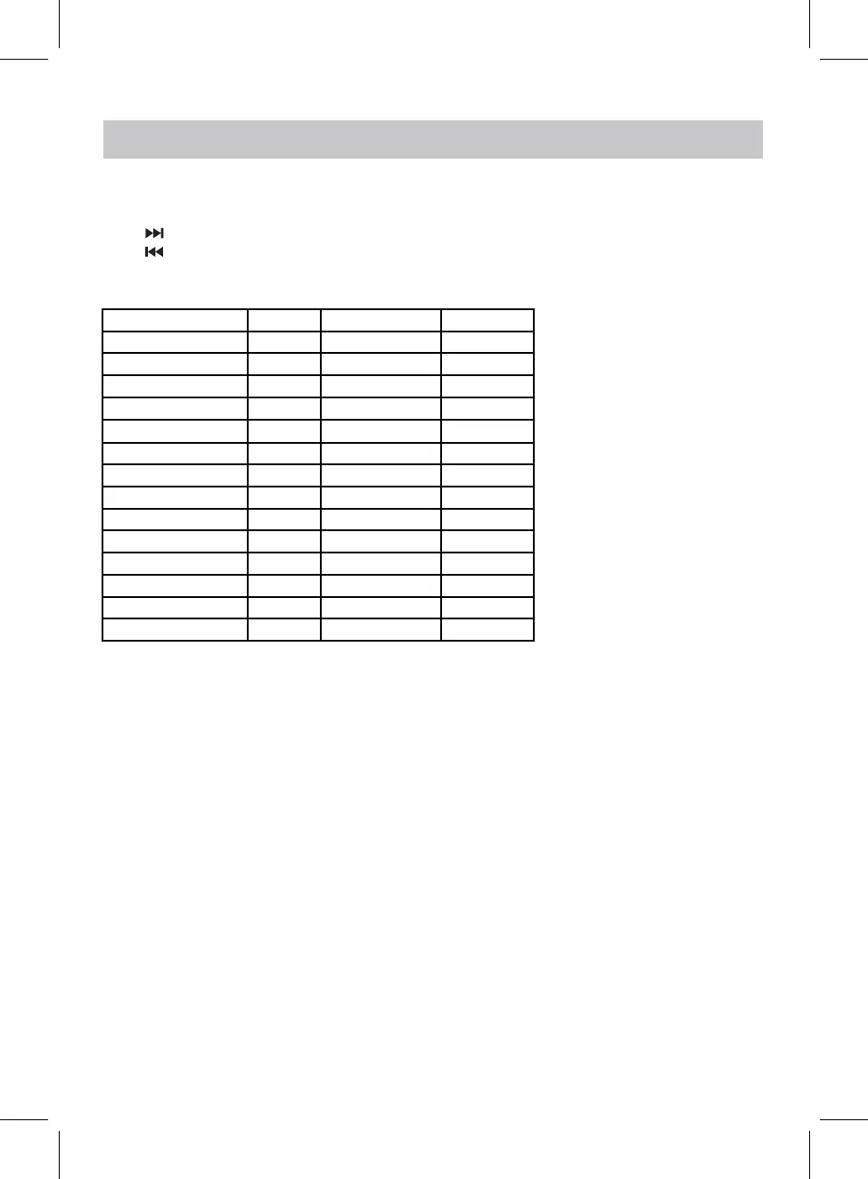 Press button to previous item;