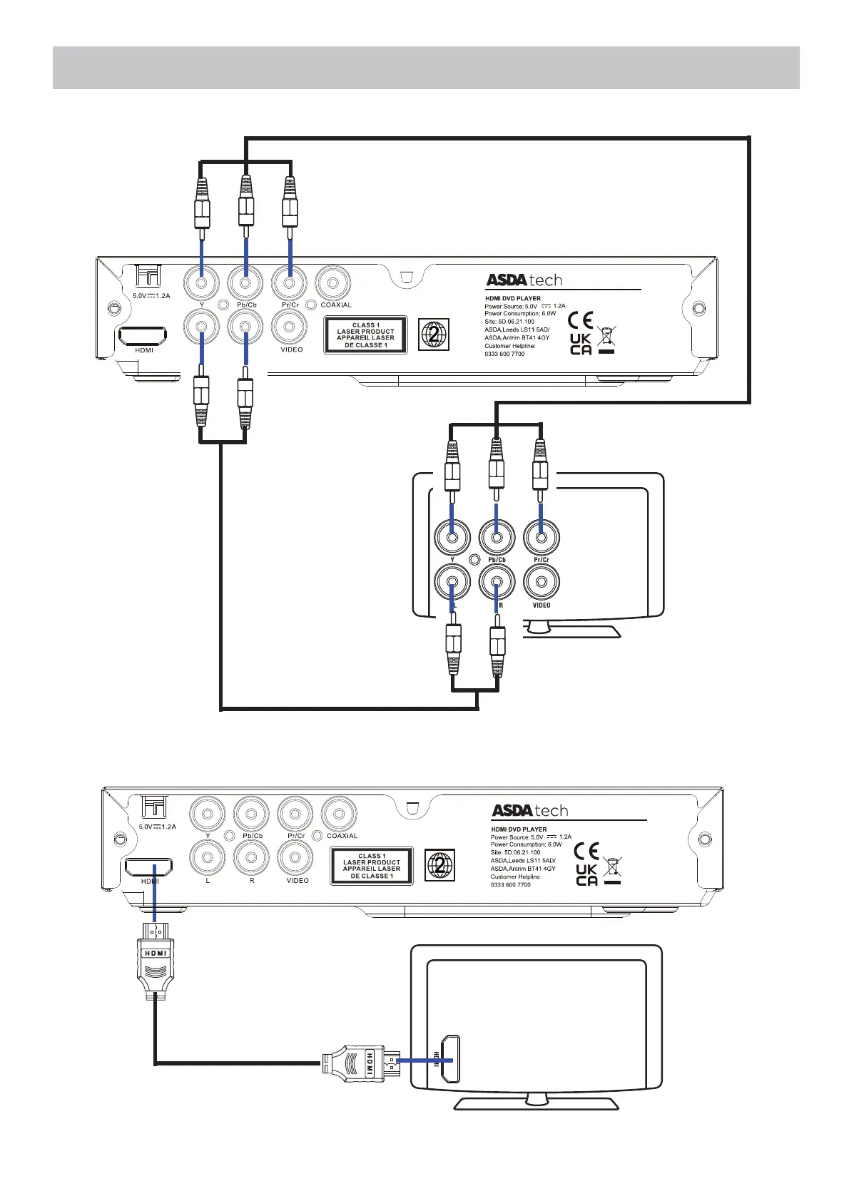 Asda ATA22DP001A - CONNECTIONS; Component (YUV) Video Connection; HDMI Digital Audio;Video Connection