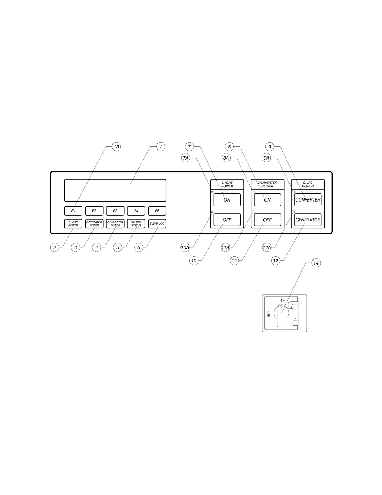 Close the input (shore power) circuit breaker(s) to the converter. Turn the disconnect (14) switch to